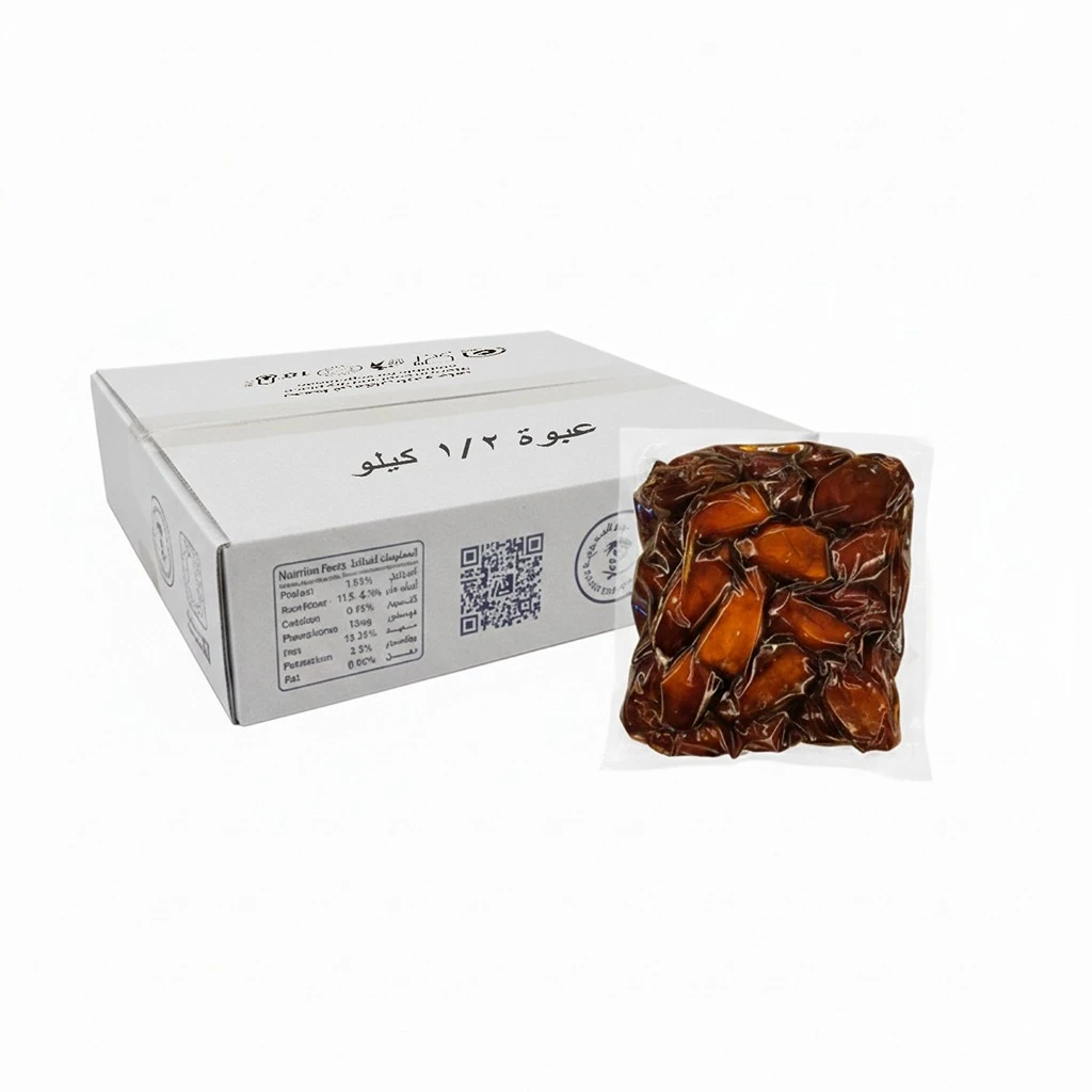 - عبوات نصف كيلو عملية: تقسيم ذكي يسهل الاستخدام اليومي ويحافظ على جودة التمر أثناء الاستهلاك.