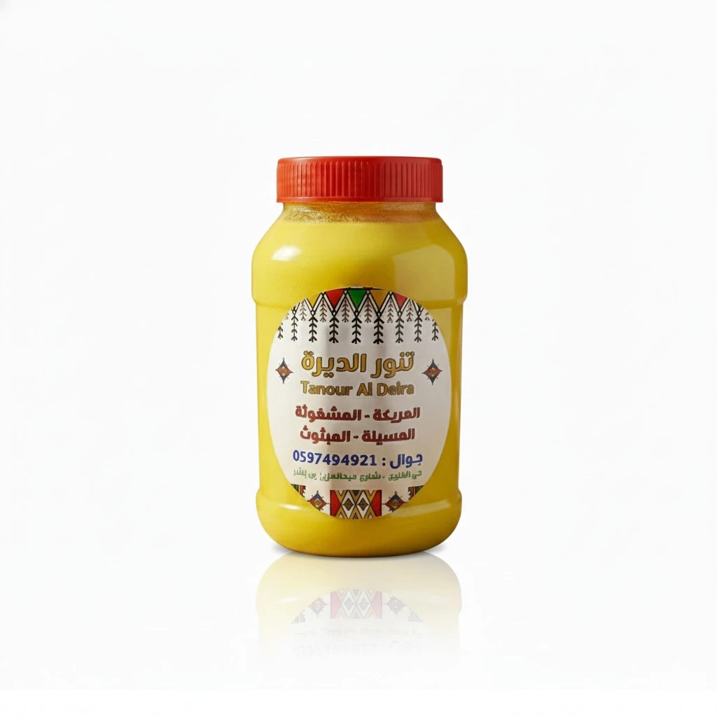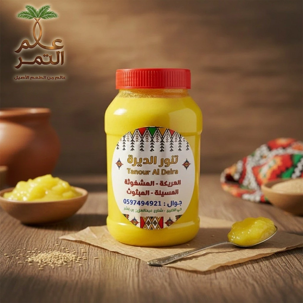 - نقاء وجودة عالية: سمن طبيعي 100%، خالٍ من الإضافات والزيوت المهدرجة، يتميز بلونه الذهبي الفاتح وقوامه المثالي.